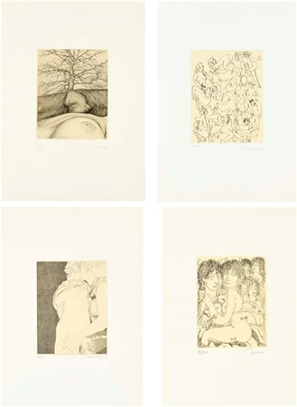 Lotto 6 AUTORI VARI Sull' erotismo.....1979 cartella contenente 4 acqueforti su carta cina es. 96/100 16x12(lastra) 25x35(foglio) firma in basso a destra tiratura in basso a sinistra Mino Maccari, Attilio Steffanoni, Peter Willburger, Tono Zancanaro a cura di Mario Stefani
