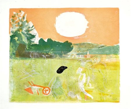 Lotto 11 SAETTI BRUNO Bologna 1902 - Venezia 1984 Paesaggio serigrafia polimaterica es. 64/110 58x70 firma in basso a destra tiratura in basso a sinistra