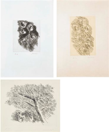 Lotto 15 MORLOTTI ENNIO Lecco 1910 - Milano 1992 Soggetti vari lotto di 3 acqueforti firma e tiratura in basso Galleria Bottega d'Arte Acqui Terme Rose 1990 acquaforte es. p.a cm. 19x16,5 lastra Boccioli di rose acquaforte es. p.a. cm. 25x16 lastra Nudi e albero acquaforte es. p.a. cm. 18x22 lastra