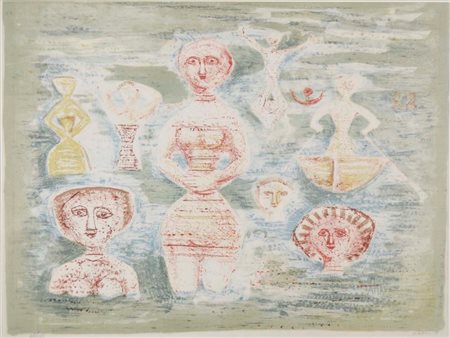 Lotto 16 CAMPIGLI MASSIMO Firenze 1895 - Saint Tropez 1971 Bagnanti 1955 litografia a 8 colori es. 75/175 48x63 firma e data in basso a destra tiratura in basso a sinistra Catalogo Generale Meloni tav. 156 esposzioni: Il Girasole Galleria d'Arte Moderna Udine - etichetta al retro timbro a secco L'Oeuvre Gravee in basso a sinistra