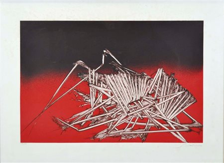 Lotto 24 SCANAVINO EMILIO Genova 1922 - Milano 1986 Tramatura litografia es. 15/120 55x75 firma in basso a destra tiratura in basso a sinistra