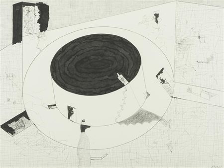 Lotto 3 Renato Ranaldi, Firenze 1941 - , Luogo quasi sacro 1992, China su carta, cm. 56x76, Firma e data in basso a destra., , Autentica dell'Artista su foto.