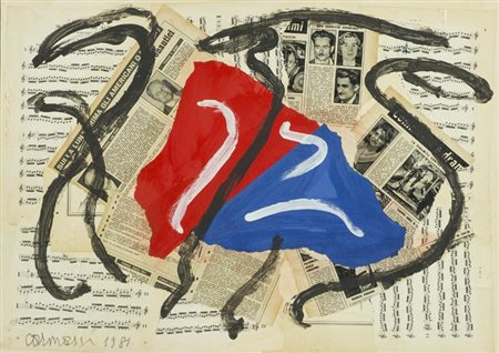 Lotto 6 Arturo Carmassi, Lucca 1925 - Empoli, Fi 2015, Senza titolo 1981, Collage e tecnica mista su cartone, cm. 51,5x72, Firma e data in basso a sinistra., , Autentica dell'Artista su foto.