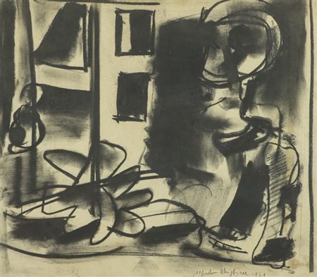 Lotto 19 Alfredo Chighine, Milano 1914 - Pisa 1974, Senza titolo 1951, Tecnica mista su carta, cm. 40x45, Firma e data in basso destra., ,