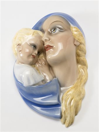 Lotto 403 Manifattura CIA, Torino - Madonna col Bambino- Altorilievo in ceramica modellata a colaggio e smaltata in policromia sotto vetrina. Marcata CIA Torino n° 510" (h cm 33)