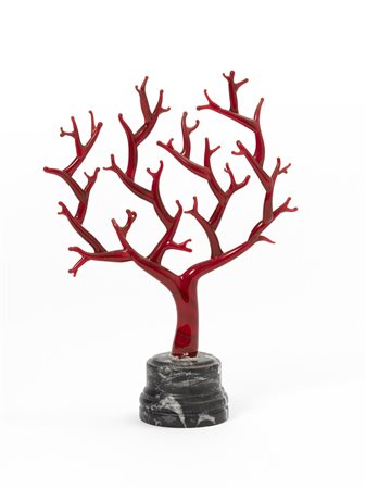 Lotto 406 Manifattura di Murano- Scultura in vetro opaco rosso venato, raffigurante ramo di corallo, poggiante su base in marmo (h cm 24) (difetti)