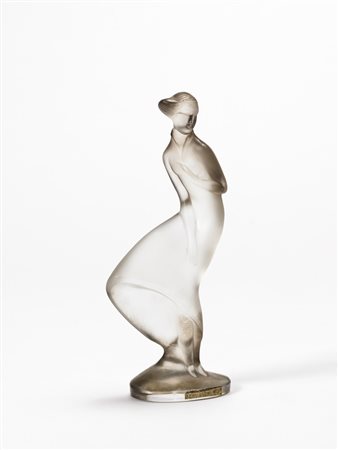Lotto 407 Ida Schwetz-Lehmann - "Ragazza nel vento" scultura in vetro ambrato pressato in stampo e molato. Cecoslovacchia 1937. Manifattura Curt Schlevogt (h cm 22)