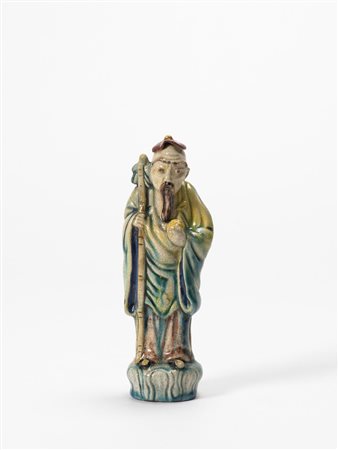 Lotto 408 Marcello Fantoni (1915) - Scultura in terracotta smaltata in policromia raffigurante saggio cinese. Marchio e firma sotto la base (h cm 20)