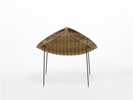 Lotto 417 Porta riviste in rattan e tondino metallico verniciato nero. Produzione Home, Italia anni 60