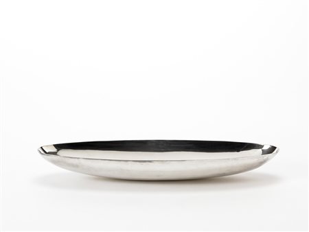 Lotto 418 Lino Sabattini (1925) - Ciotola "Calaluna" in metallo argentato di forma ovale allungata. Edizione limitata per Alfa Romeo, 1972 (cm 45,6x5x14,59) Completa di scatola originale