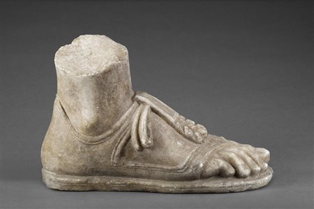 Lotto 7 Antico frammento di scultura in marmo raffigurante un piede (cm 30x18) Ancient fragment of marble sculpture representing a foot