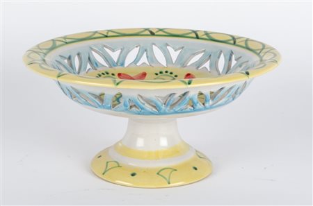 Lotto 1 ALZATA in ceramica smaltata e decorata. Collesano XX secolo Misure: diametro cm 30 x h 15