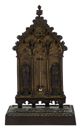 Lotto 6 SCULTURA/TERMOMETRO in ottone brunito riccamente lavorato. Italia meta' '900 Misure: cm 12 x 5,5 x h 20