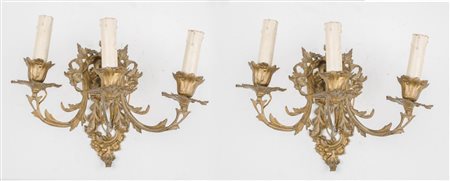 Lotto 10 COPPIA APPLIQUES a tre fiamme in ottone. Sicilia XIX secolo Misure: cm 37 x 29 x h 24