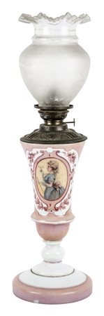 Lotto 15 LUME in opaline decorato a mano con porta petrolio in metallo e boccia in vetro. Sicilia XIX secolo Misure: h cm 63