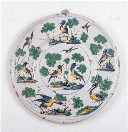 Lotto 16 PIATTO in ceramica decorata a motivo fogliaceo e con volatili. Italia centrale XIX secolo Misure: diametro cm 33