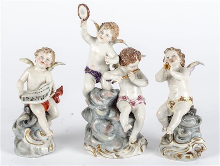 Lotto 18 TRE SCULTURE in porcellana policroma raffiguranti "musicanti". XX secolo Misure: varie