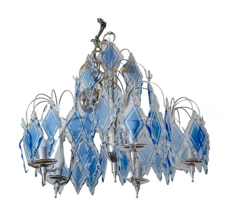 Lotto 8 COPPIA CANDELABRI a sei luci in metallo e vetro (rotture). Italia XX secolo Misure: h cm 68