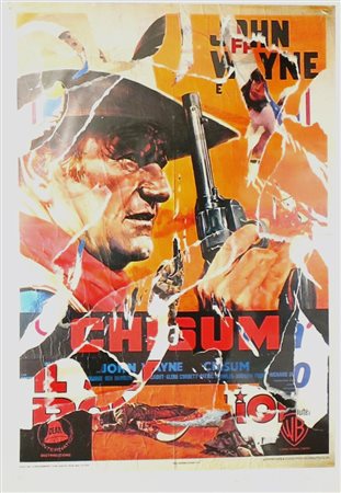 Rotella Mimmo (Catanzaro, 1918- Milano, 2006) CHISUM Seridécollage su carta 100x70 cm P.A. di una tiratura di 125 esemplari + 50 in numeri romani + 20 P.A. Firmato a matita, in basso a destra Timbro a secco della Fondazione Rotella, in basso a sinistra Bibliografia: Catalogo "Mimmo Rotella, Multipli décollages", a cura di Elena Pontiggia, Silvana Editore 2005, a pag. 60 Silkscreen and décollage multiple on paper 100x700 P.A. from an edition of 125 + 50 (roman numerals) + 20 P.A. (Artist Proof) Signed in pencil, lower right Blind stamp of Fondazione Rotella, lower left Literature: Catalog "Mimmo Rotella, Multipli décollages", by Elena Pontiggia, Published by Silvana Editore 2005, illustrated on pag. 60