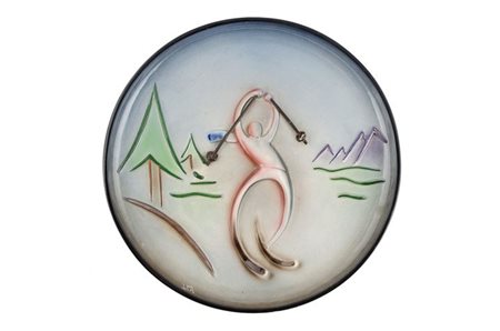 Diam cm 30, piatto in ceramica smaltata e policroma