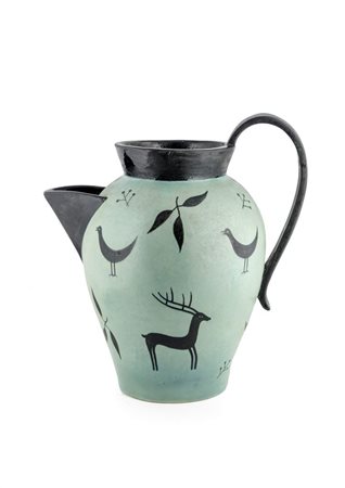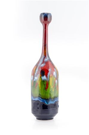 H. cm 34 bottiglia in ceramica smaltata dipinta