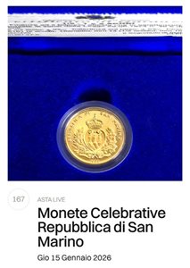 giovedì 15 gennaio 2026 ore 17:00 (UTC +01:00)Pre-Asta #167: Monete Celebrative Repubblica di San Marino