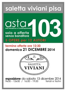 domenica 21 dicembre 2014 ore 12:30 (UTC +01:00)Asta N. 103 (solo a offerta, senza banditore) - Arte Moderna e Contemporanea, 5 Opere per 12 Autori