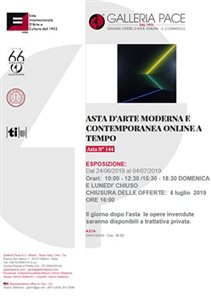 domenica 21 luglio 2019 ore 22:00 (UTC +01:00)Asta N. 5 - Arte Moderna e Contemporanea - Asta a tempo