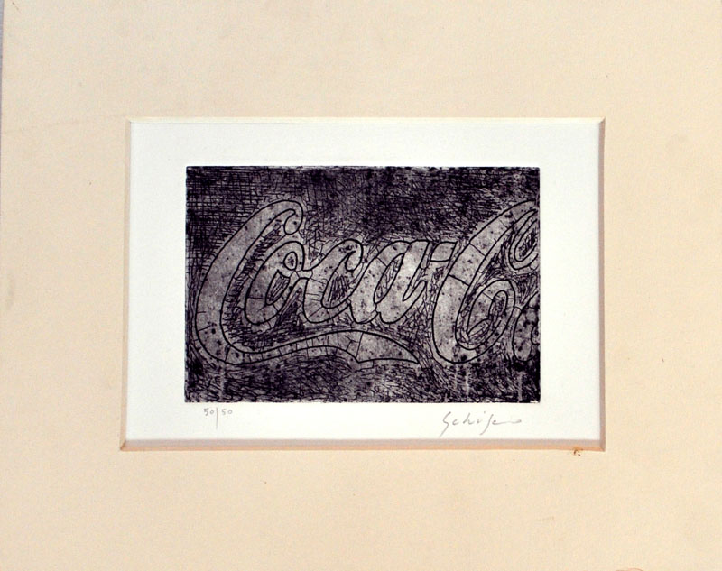 MARIO SCHIFANO Coca Cola Acquaforte in b/n – es. 50/50 cm. 23,5x28 Firma e tiratura in basso