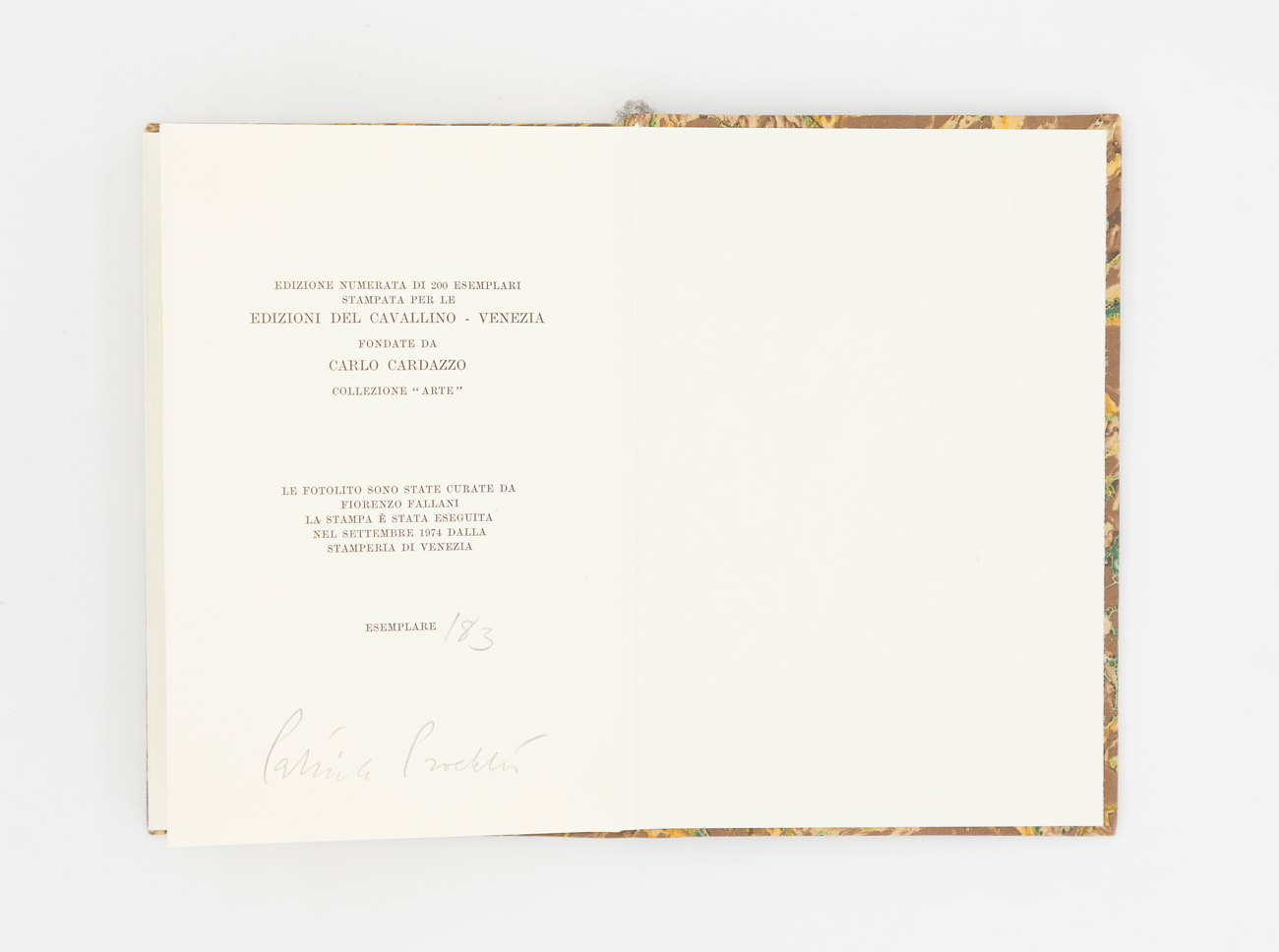 La stampa è stata eseguita nel Settembre 1974 dalla Stamperia di Venezia