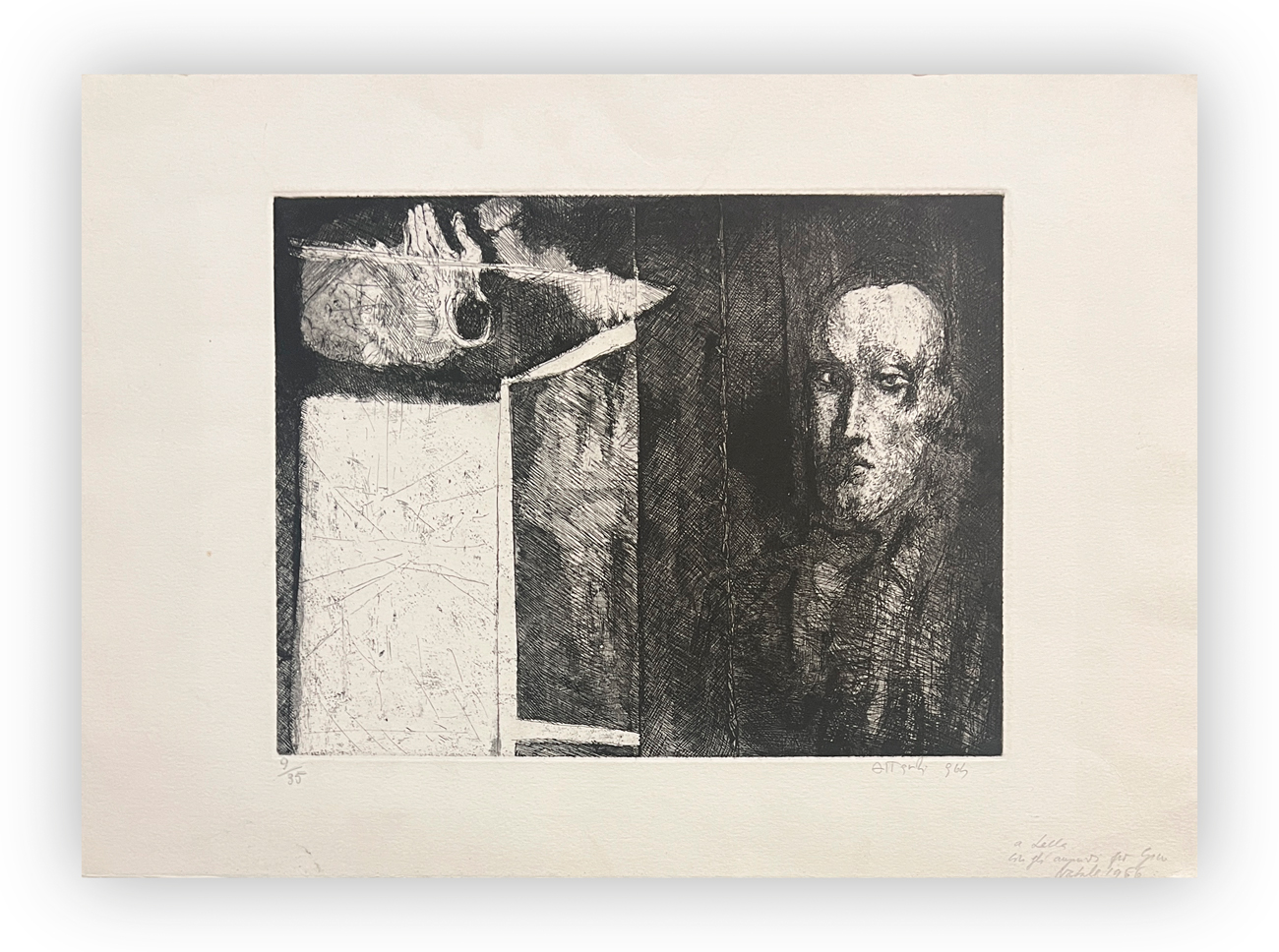 Firma, datazione, dedica ad personam e numerazione (Esemplare 9/35) a matita al fronte