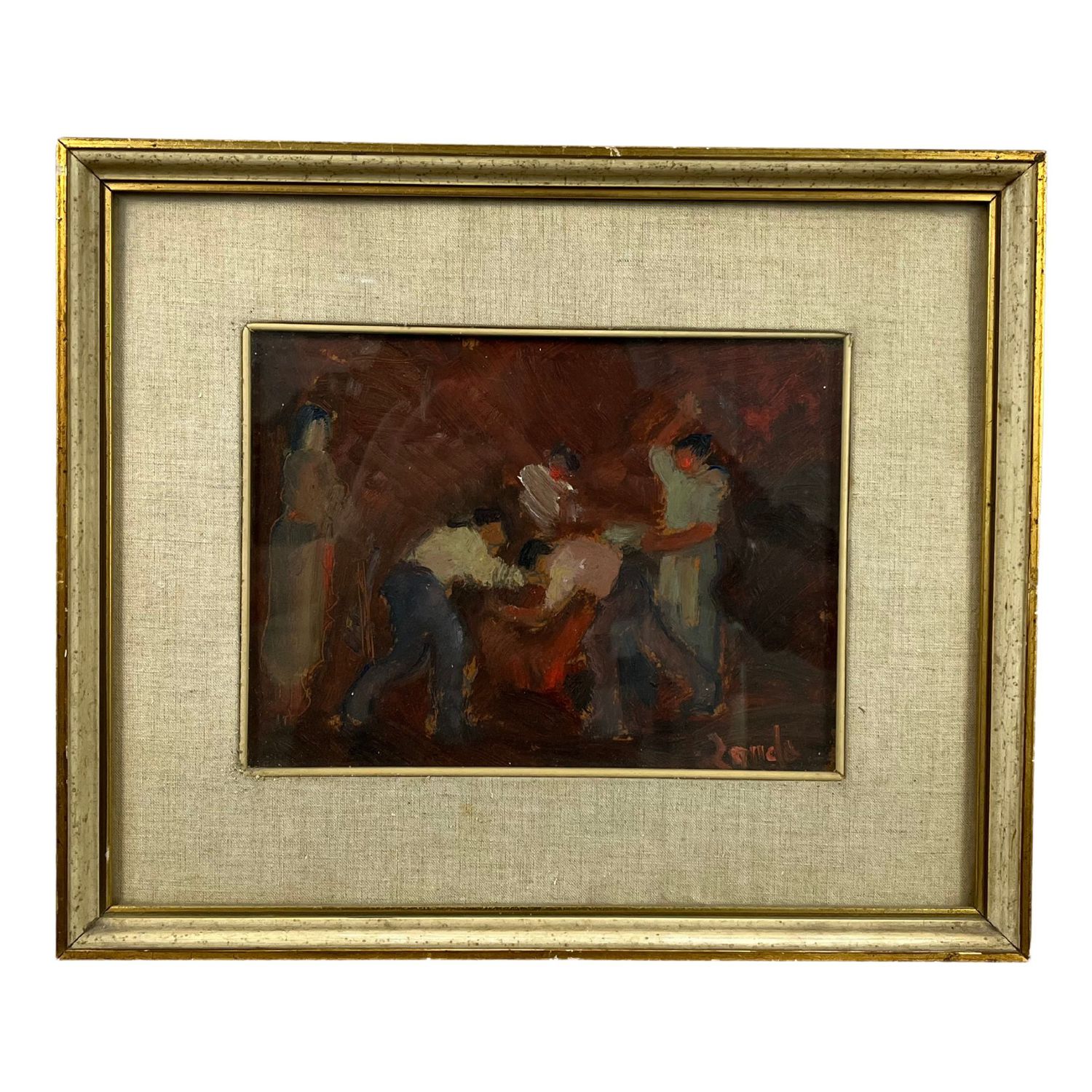 Dipinto olio su pannello, periodo XX secolo raffigurante Personaggi da artista Impressionista.