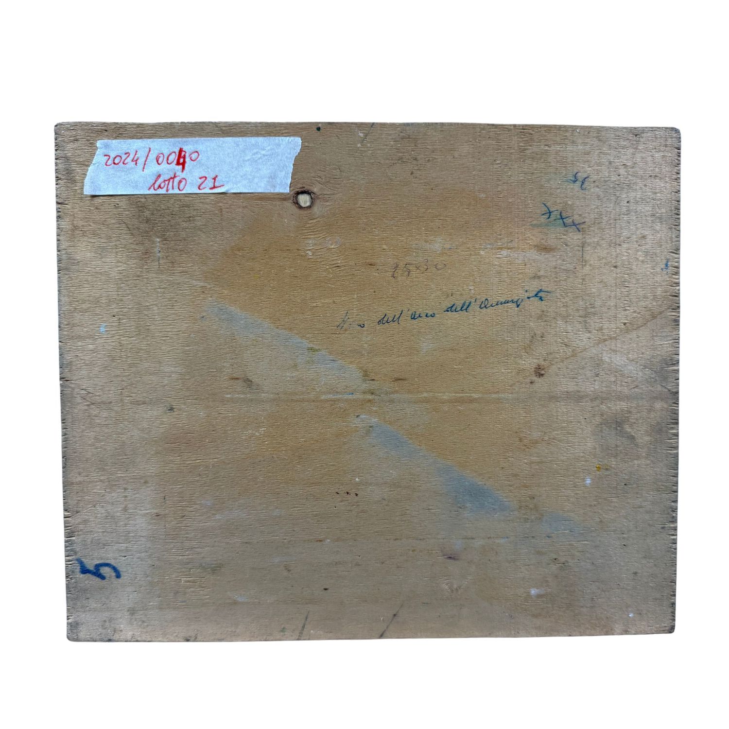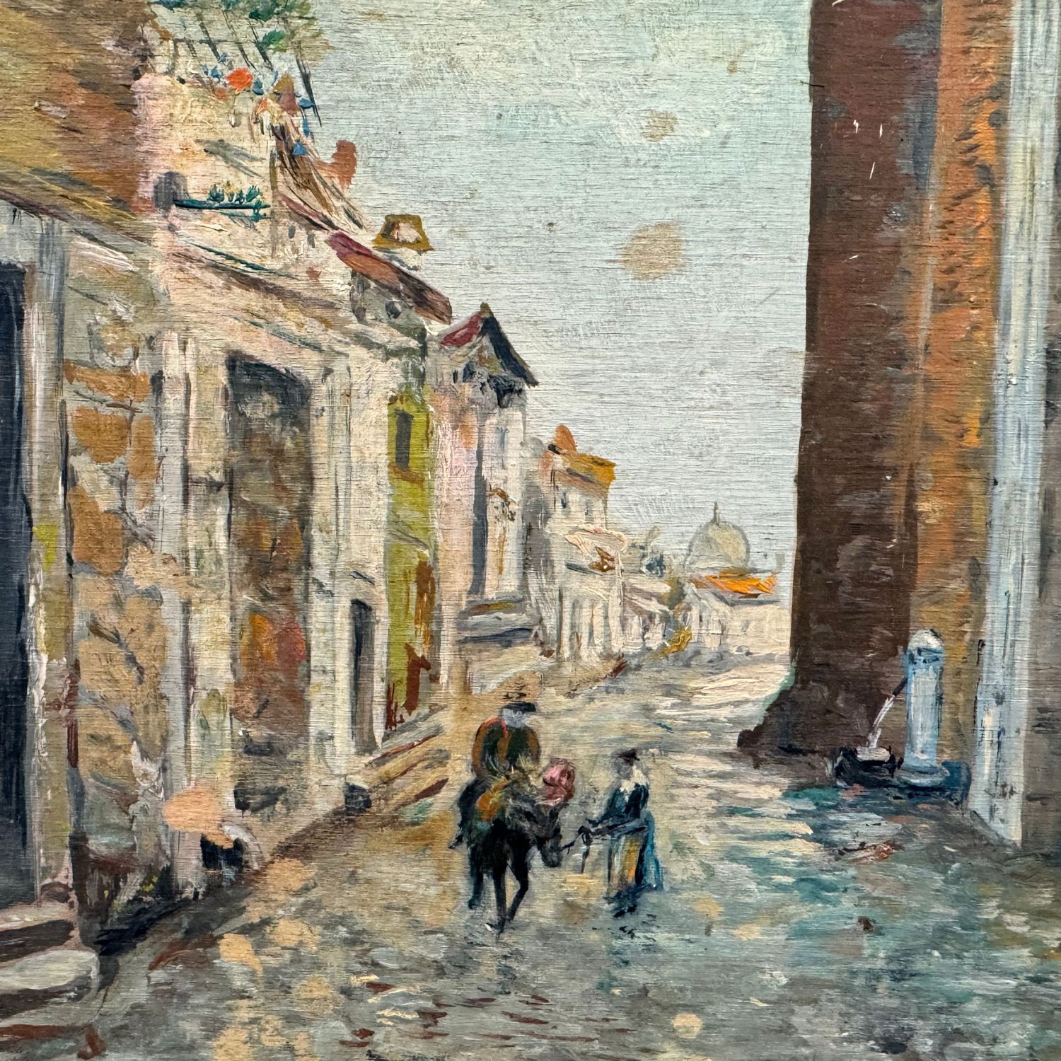 Dipinto olio su tavola, periodo XX secolo scuola Italiana, raffigurante Stradina di paese.