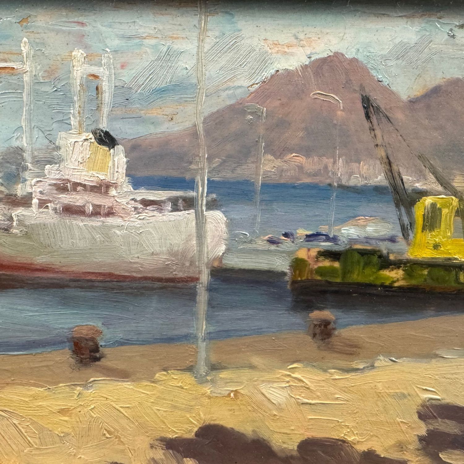 Dipinto olio su tavola, periodo XX secolo scuola Italiana, raffigurante Scorcio di marina a Castellammare di Stabia.