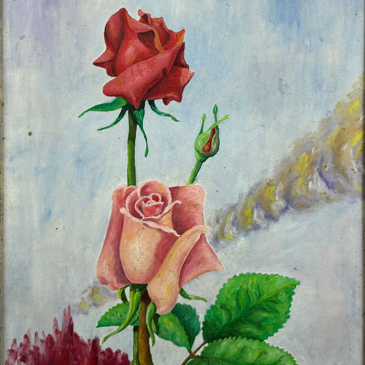 Dipinto olio su tela, periodo XX secolo scuola Italiana, raffigurante Una Rosa.