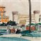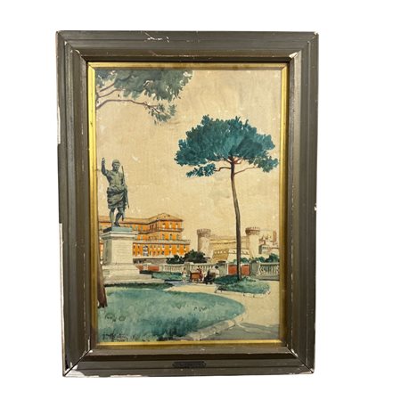 Dipinto acquerello su carta, periodo XX secolo scuola Italiana, raffigurante Scorcio di Napoli.