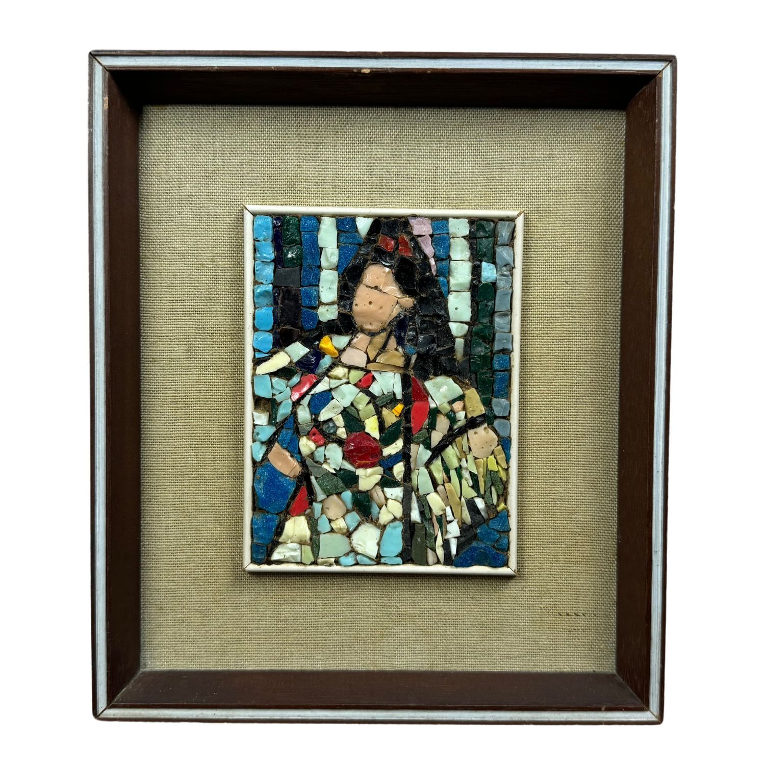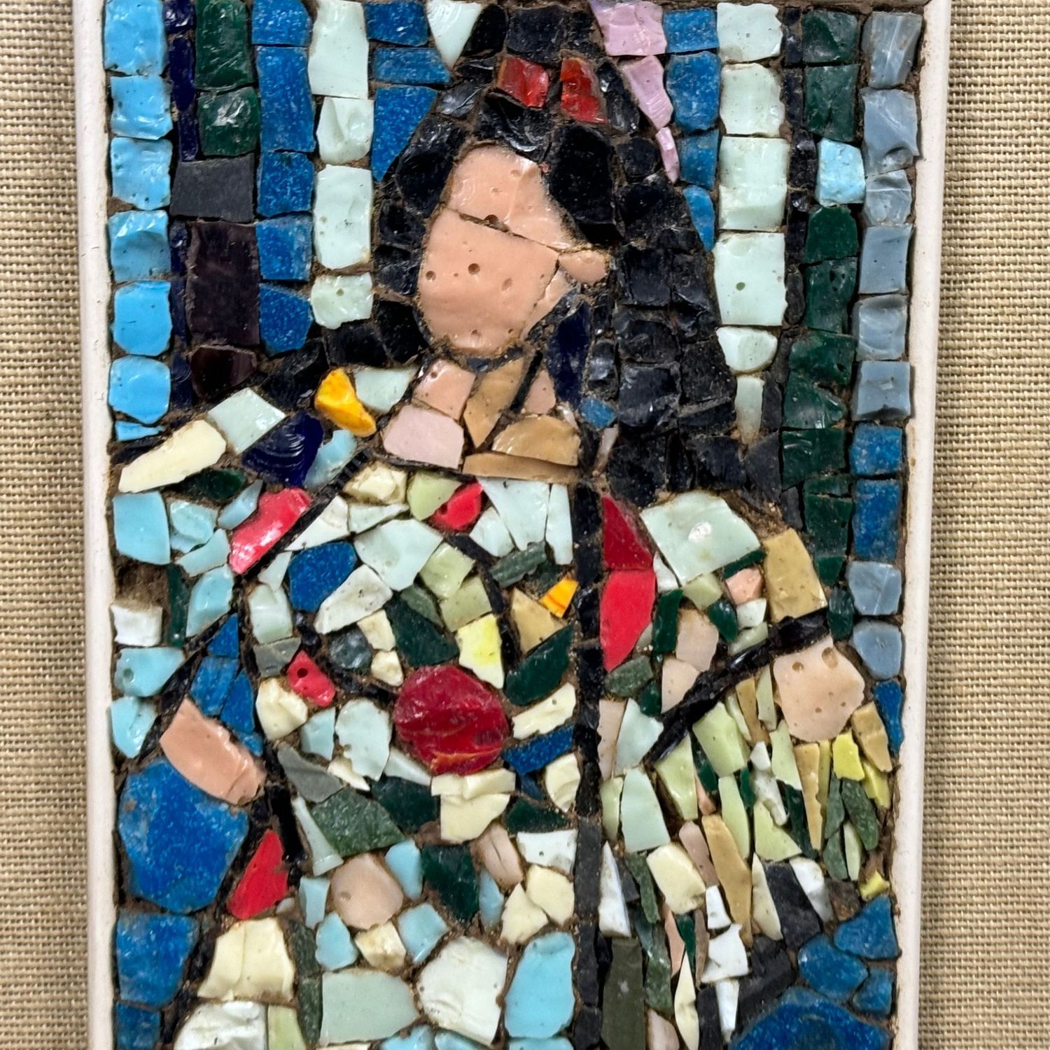 Mosaico in pietra, periodo XX secolo Dimensioni interno cornice: 13x10 cm