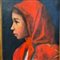 Dipinto olio su tela, periodo XX secolo scuola Italiana, raffigurante Profilo di ragazza con copricapo.