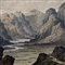 Tecnica mista su carta, periodo XIX secolo scuola Europea, raffigurante Paesaggio con rocce (luogo imprecisato)