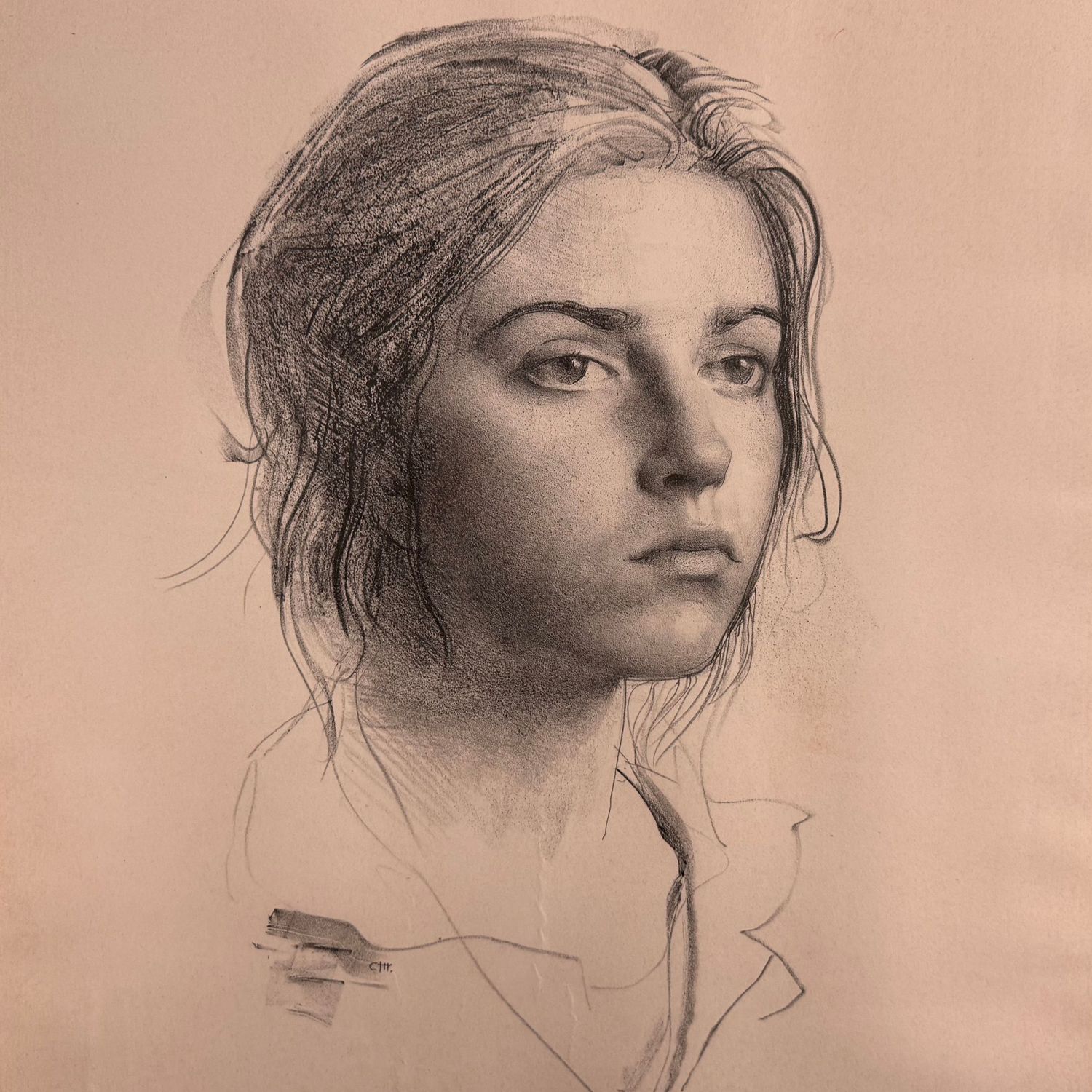 Litografia originale di Annigoni, periodo XX secolo scuola Italiana, raffigurante Busto di giovane donna.