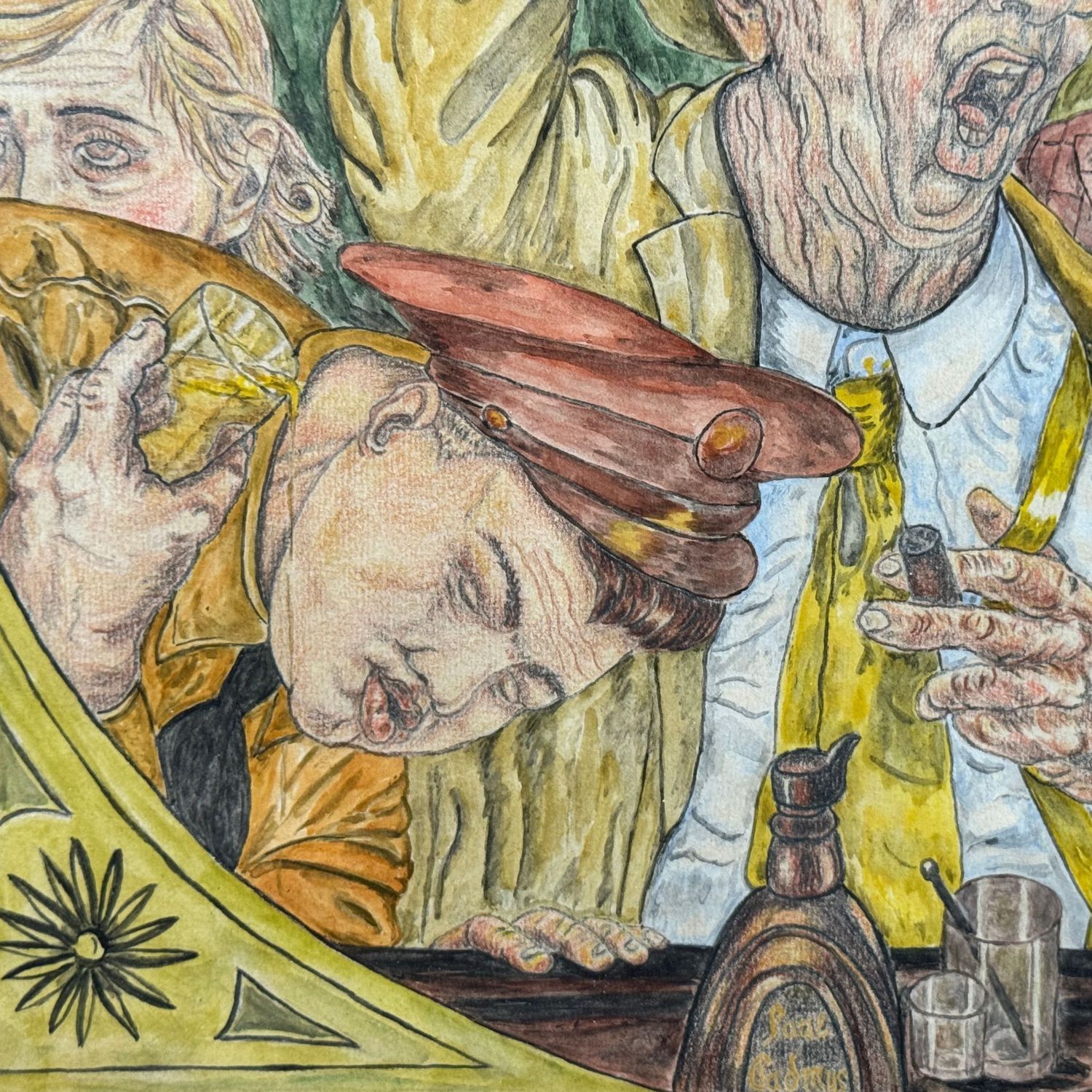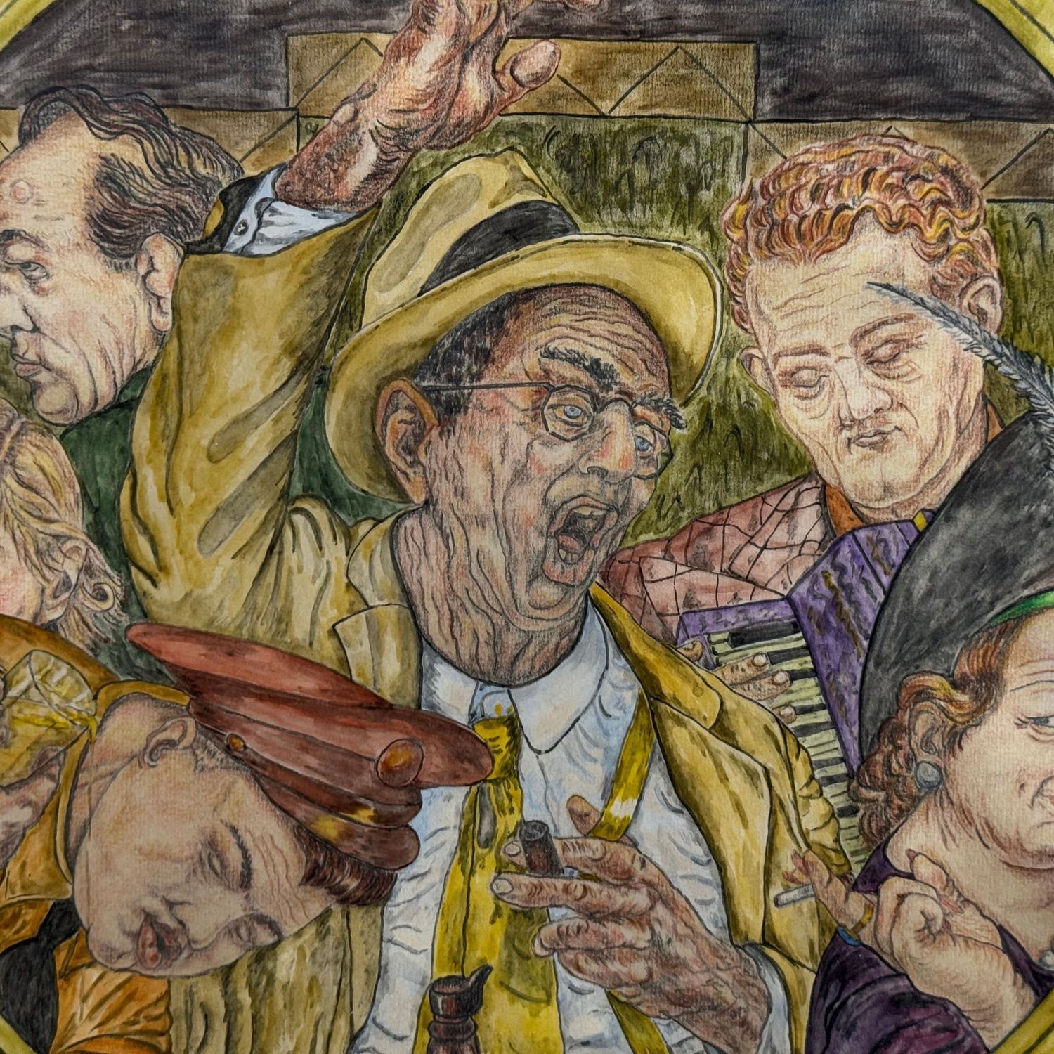 Tecnica mista su carta, periodo XX secolo scuola Italiana, raffigurante Personaggi.