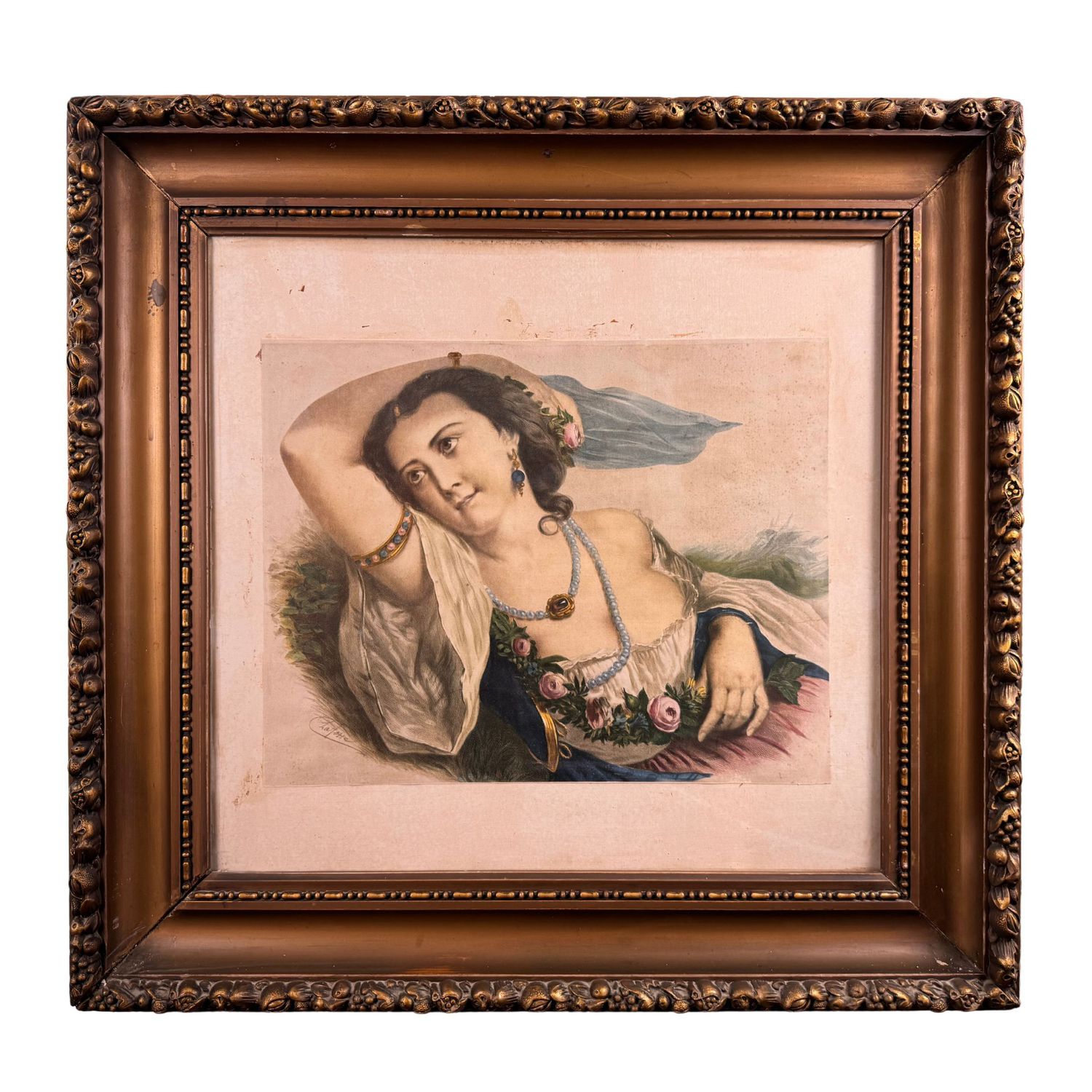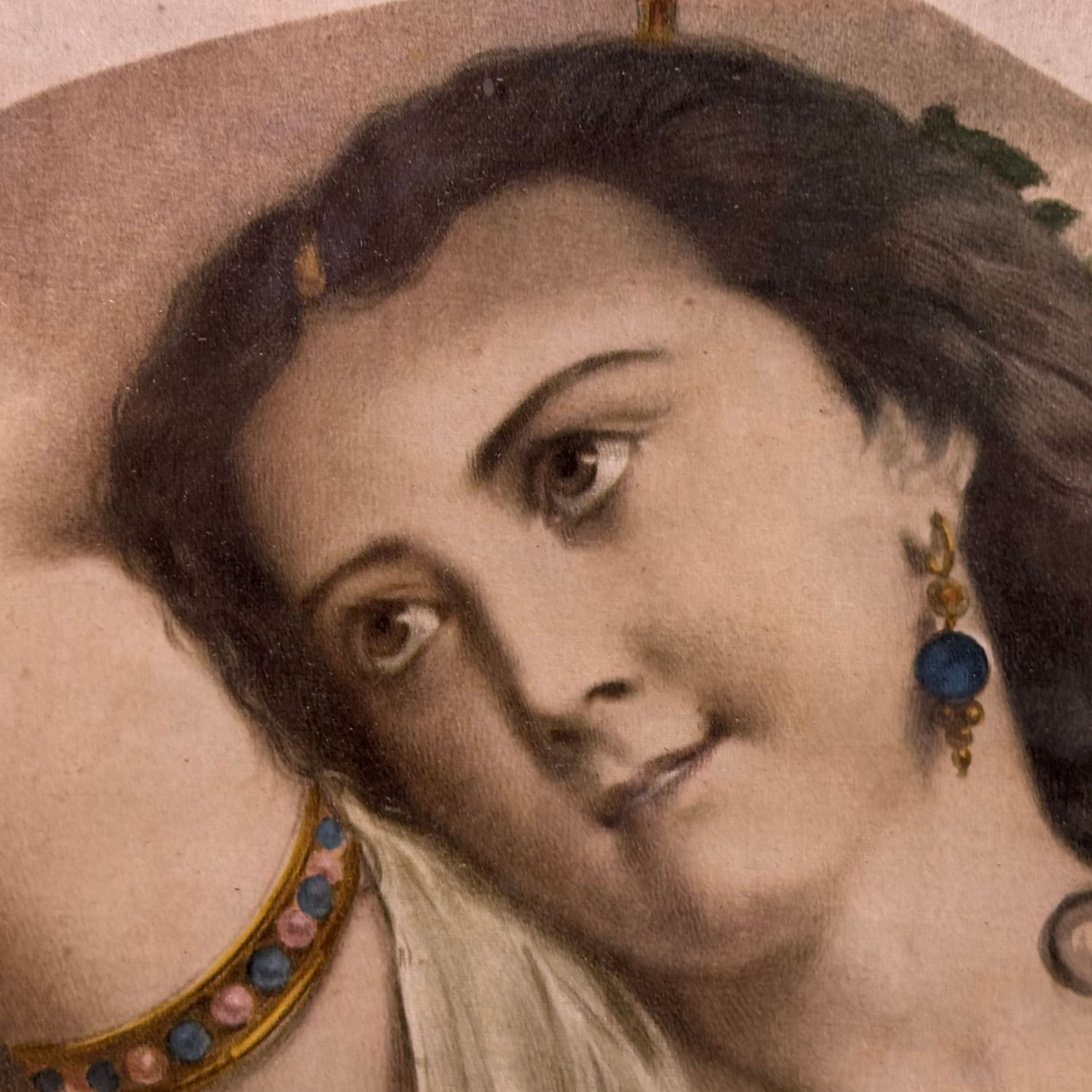 Antica litografia di scuola Italiana periodo XIX secolo, raffigurante Ritratto di donna.