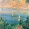 Dipinto olio su pannello, periodo XX secolo scuola Italiana , raffigurante Veduta del golfo.