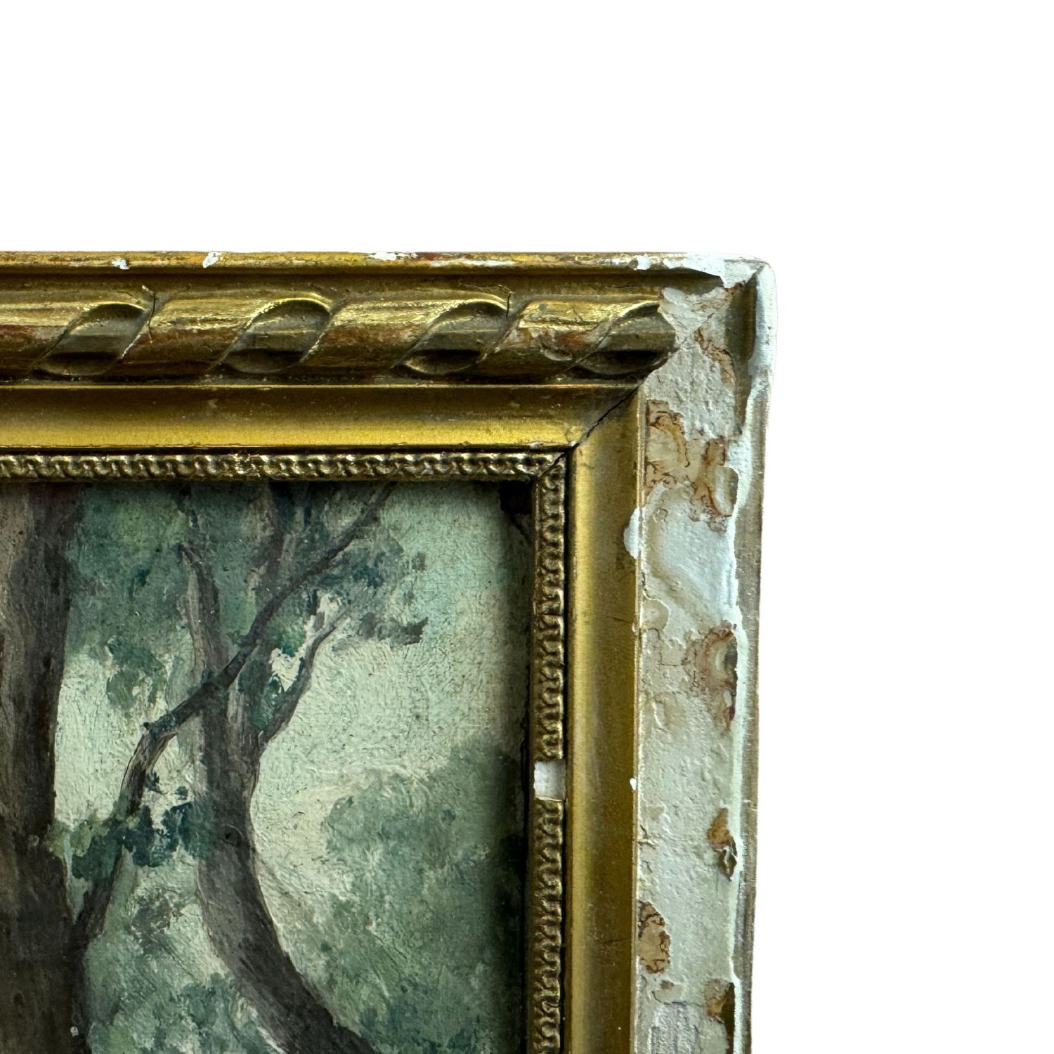 Dipinto olio su cartoncino, periodo XX secolo scuola Italiana, raffigurante Veduta boschiva.