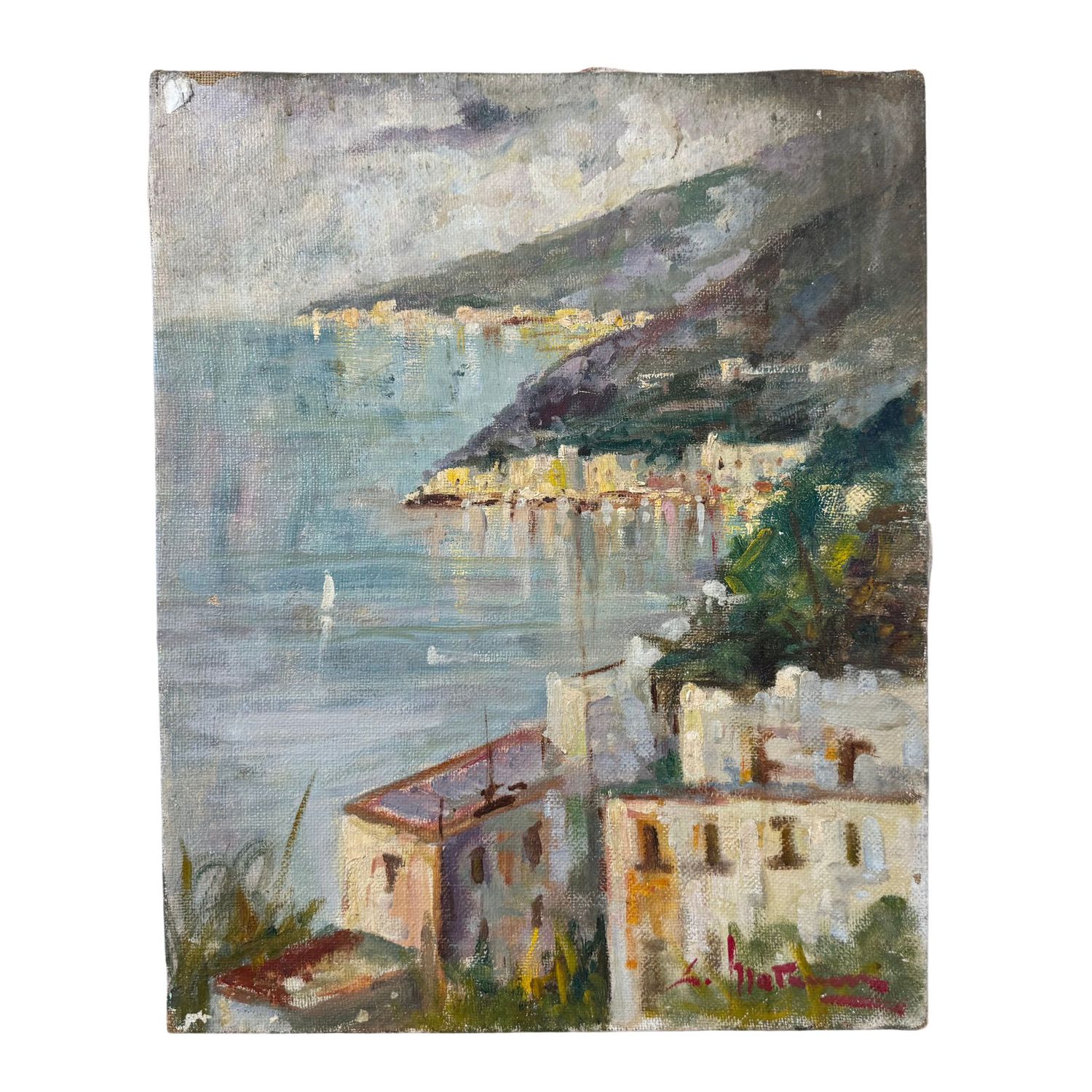 Dipinto olio su tela, periodo inizio XX secolo scuola Italiana, raffigurante Scorcio di costiera.