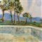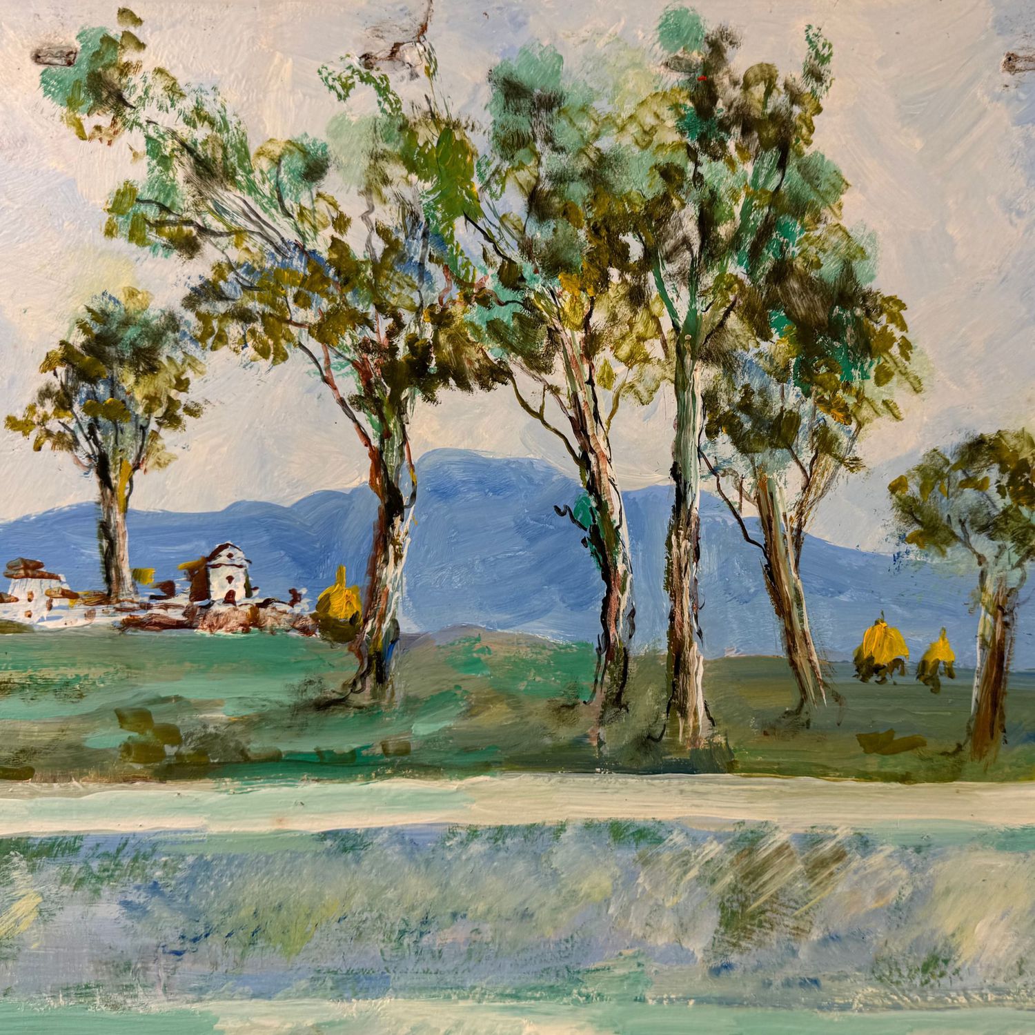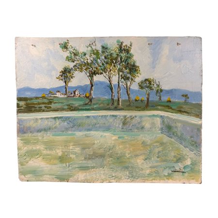 Dipinto olio su pannello, periodo XX secolo scuola Italiana, raffigurante Paesaggio.
