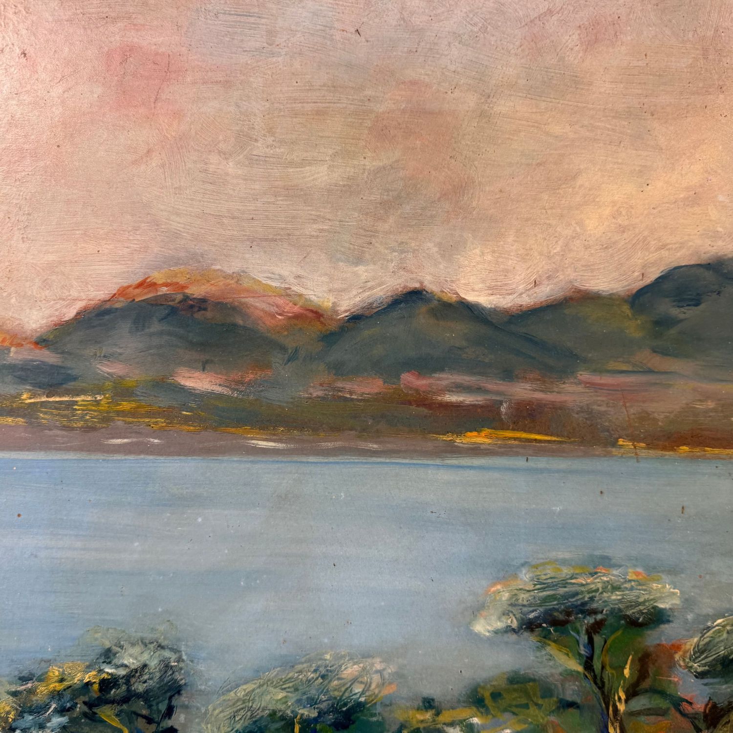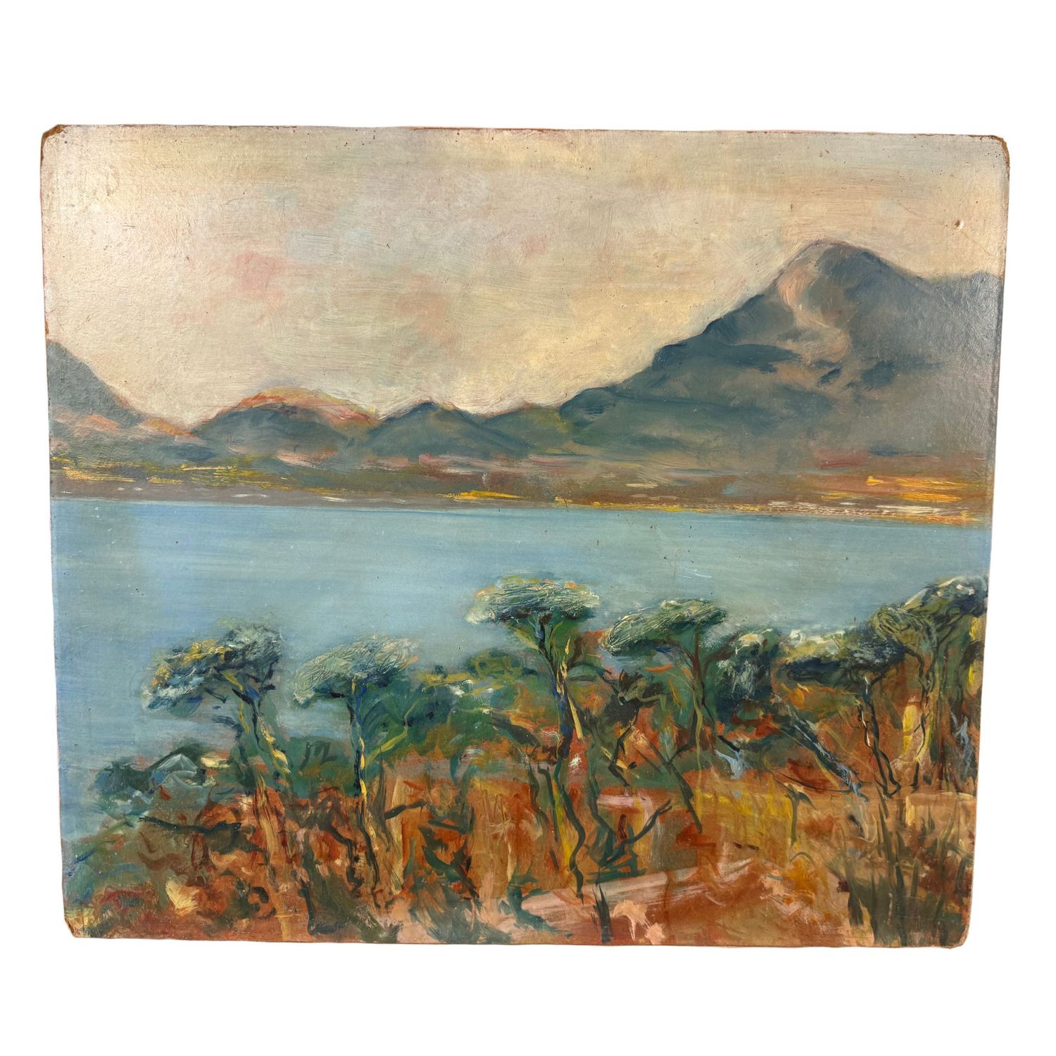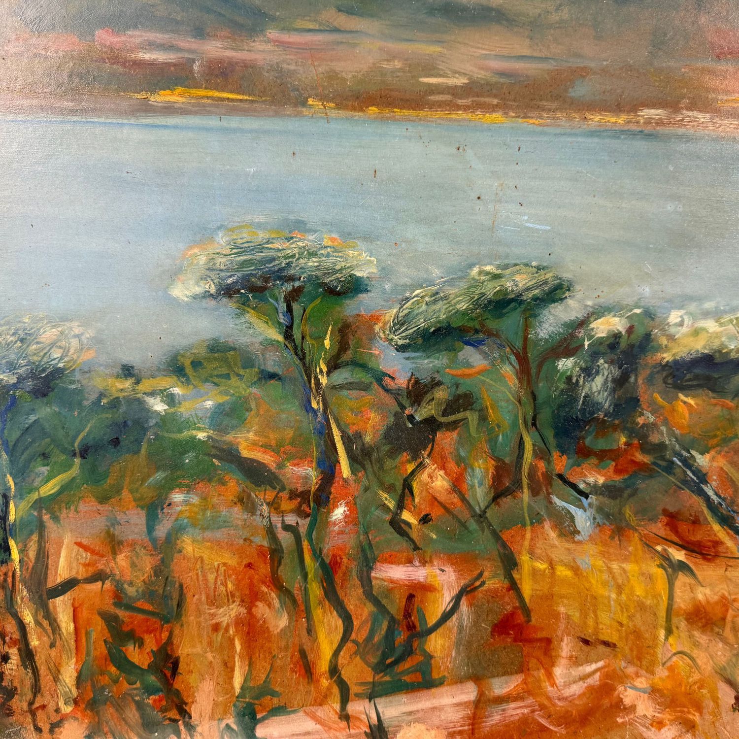 Dipinto olio su pannello, periodo XX secolo scuola Italiana, raffigurante Paesaggio marino.