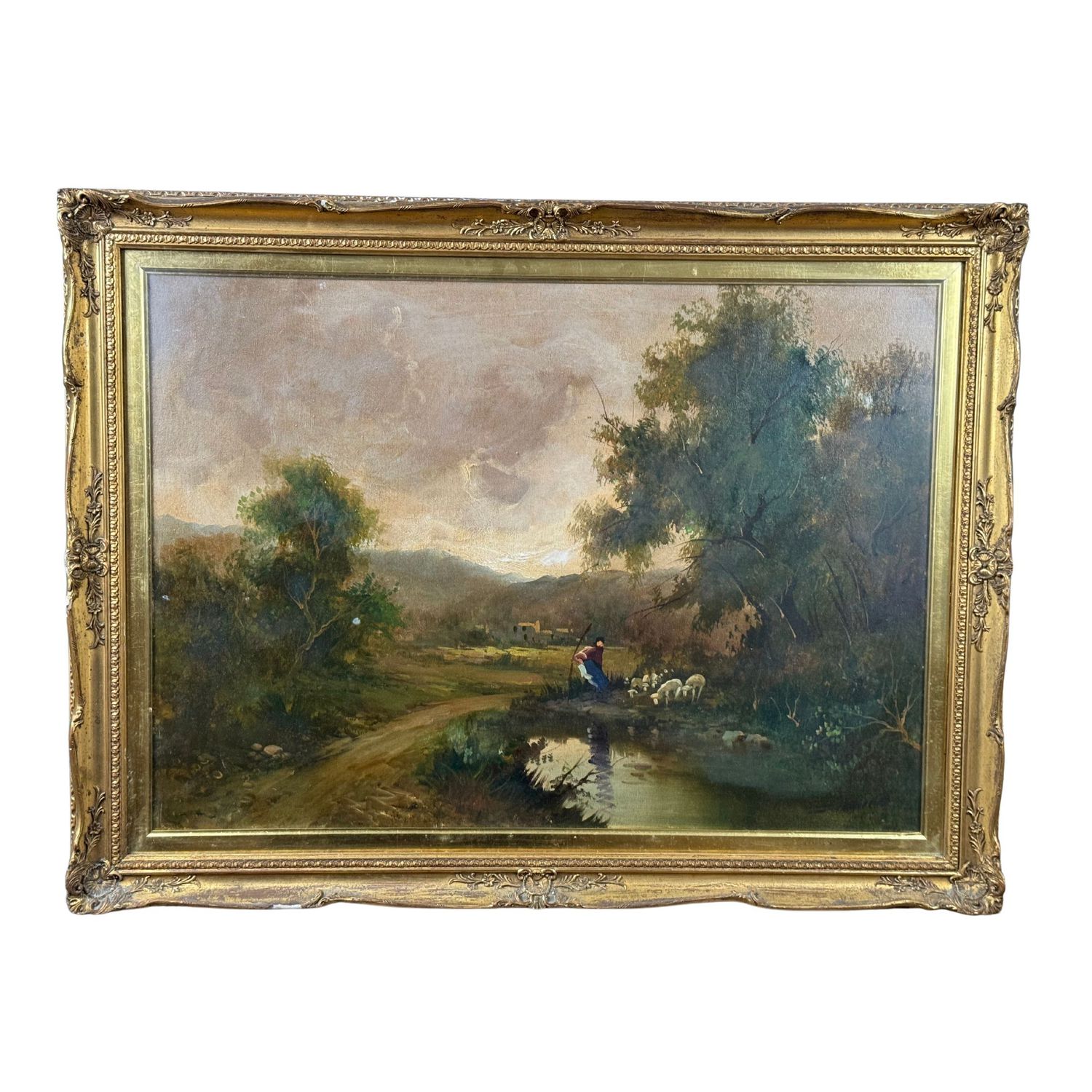 Dipinto in ottime condizioni, corredato da una cornice in legno dorato e intagliato con lievi segni di vissuto.