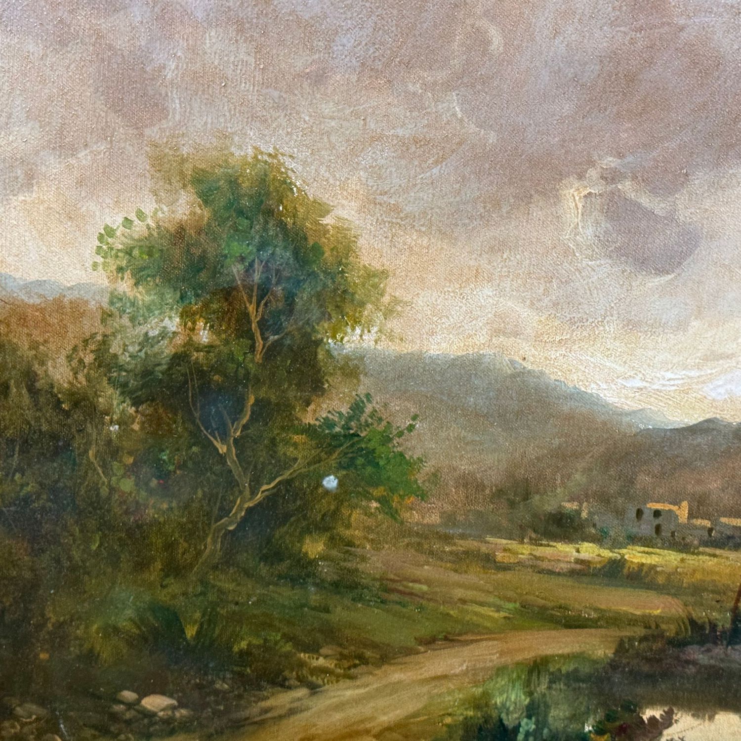 Dipinto olio su tela, periodo prima metà del XX secolo scuola Italiana, raffigurante Paesaggio con contadina.