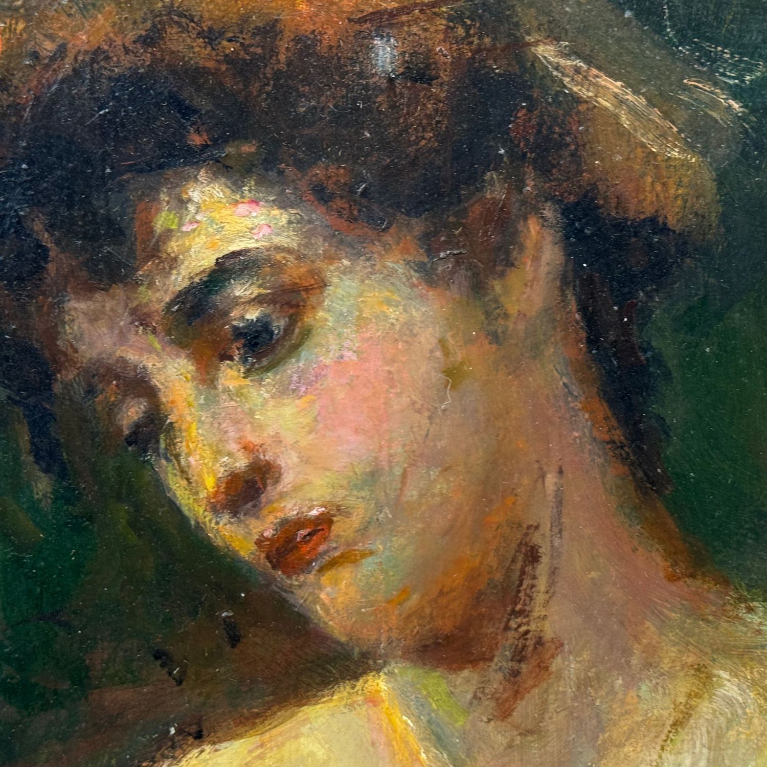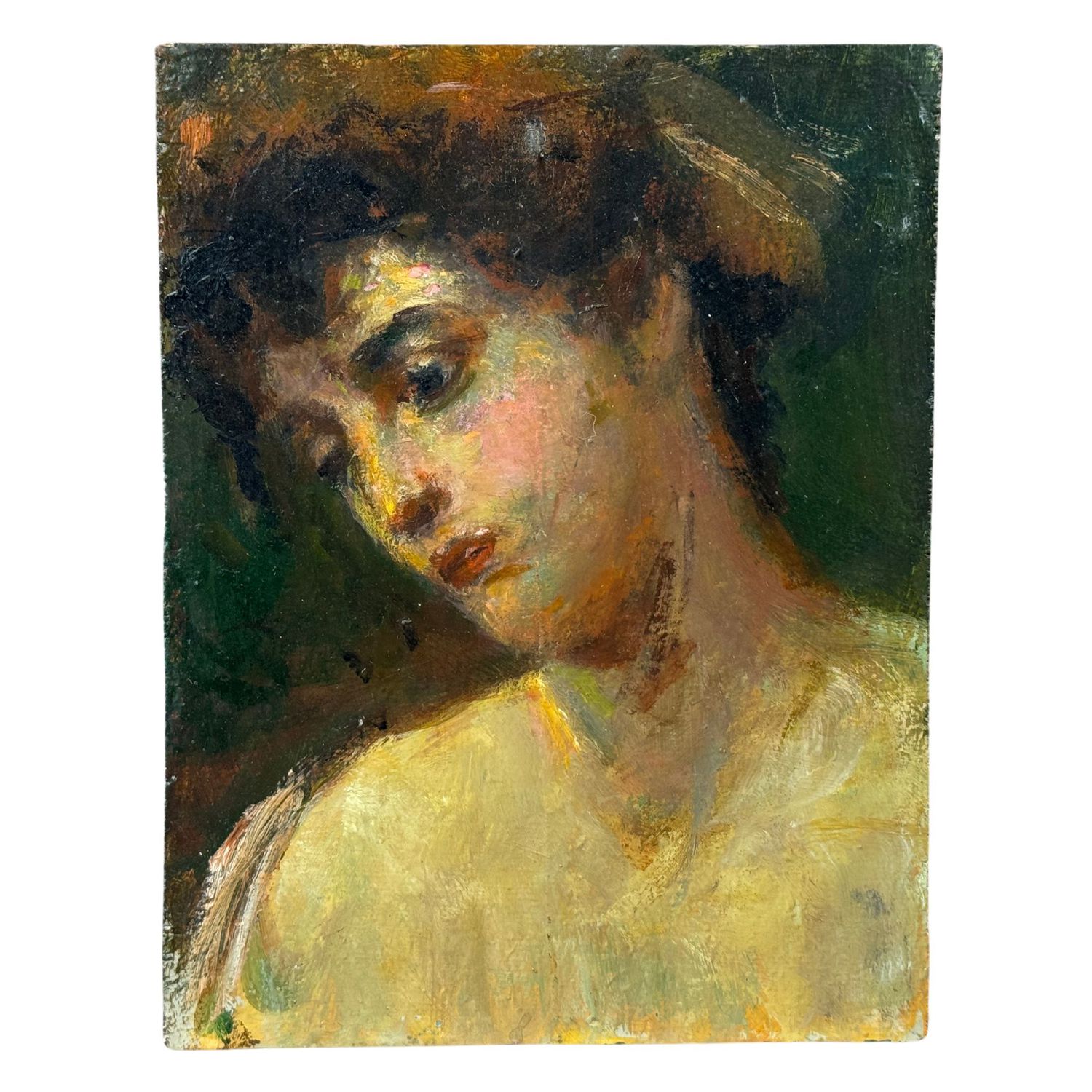 Piccolo dipinto olio su tavola, periodo XX secolo scuola Italiana, raffigurante Ritratto di donna.